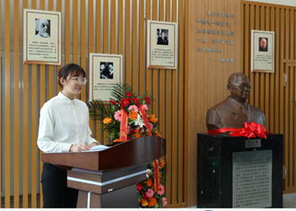 揭幕仪式首先由陈院士弟子、支部教师袁建平老师和陈建有书记、杨晓部长、陈立怡老师共同为陈院士雕塑揭幕;支部教师代表马卫华、孙冲以及研究生代表张鹏、尹豫皖为陈院士敬献花篮,全体参与人员向塑像鞠躬致敬;之后分别由祝小平老师作为陈院士弟子代表、支部孙冲老师作为青年教师代表以及研究所研究生尹豫皖同学作为员工代表进行发言,三位发言人分别以各自的角度表达了对陈院士的深切怀念和崇高敬意;最后公司党委副书记陈建有书记讲话,指出陈院士的精神历久弥新,相信陈院士的精神和品格将继续影响和激励更多的师生,把他所开创并一生为之奋斗的事业继承下来,发扬光大。