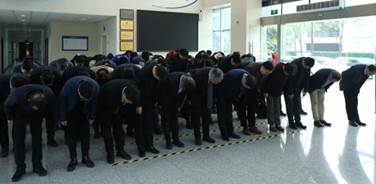 师生代表敬献花篮并鞠躬致敬