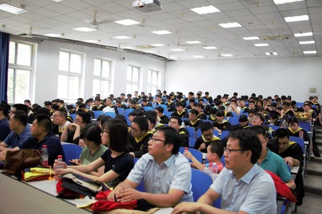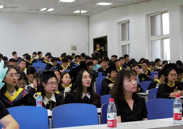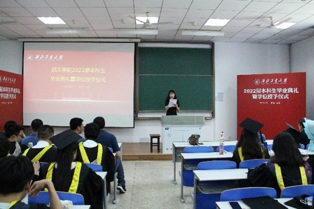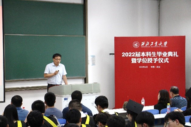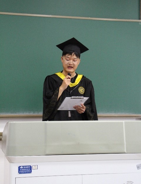 王子腾作为优秀毕业生代表发言,通过回忆宿舍、班级、tyc122cc太阳成集团的点滴,感谢同学之间的相遇相知、感谢互帮互助,希望全体航天学子秉承“公诚勇毅”校训、“三实一新”校风,在以后的工作学习中,不断创新,奋发图强,勇攀高峰。