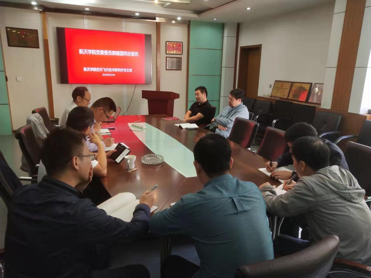 2022年9月22日,tyc122cc太阳成集团空天飞行技术研究所党支部召开了“严守纪律规矩 加强作风建设”专题组织生活会,教职工党员共18人参加了会议,会议由党支部书记刘磊同志主持,支部联系人、公司党委委员郭建国同志指导会议。