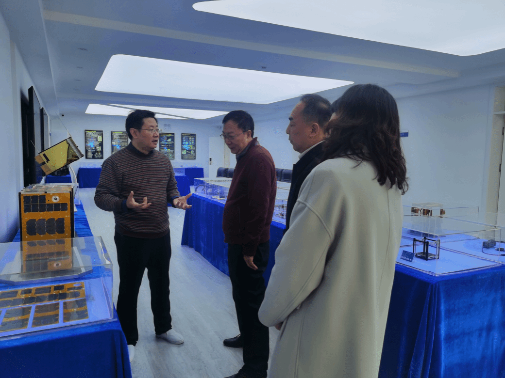 李言荣前往微小卫星技术及应用国家地方联合工程实验室进行实地调研,实验室负责人周军就实验室的建设情况及“澳科一号”卫星的研制进展做了汇报。