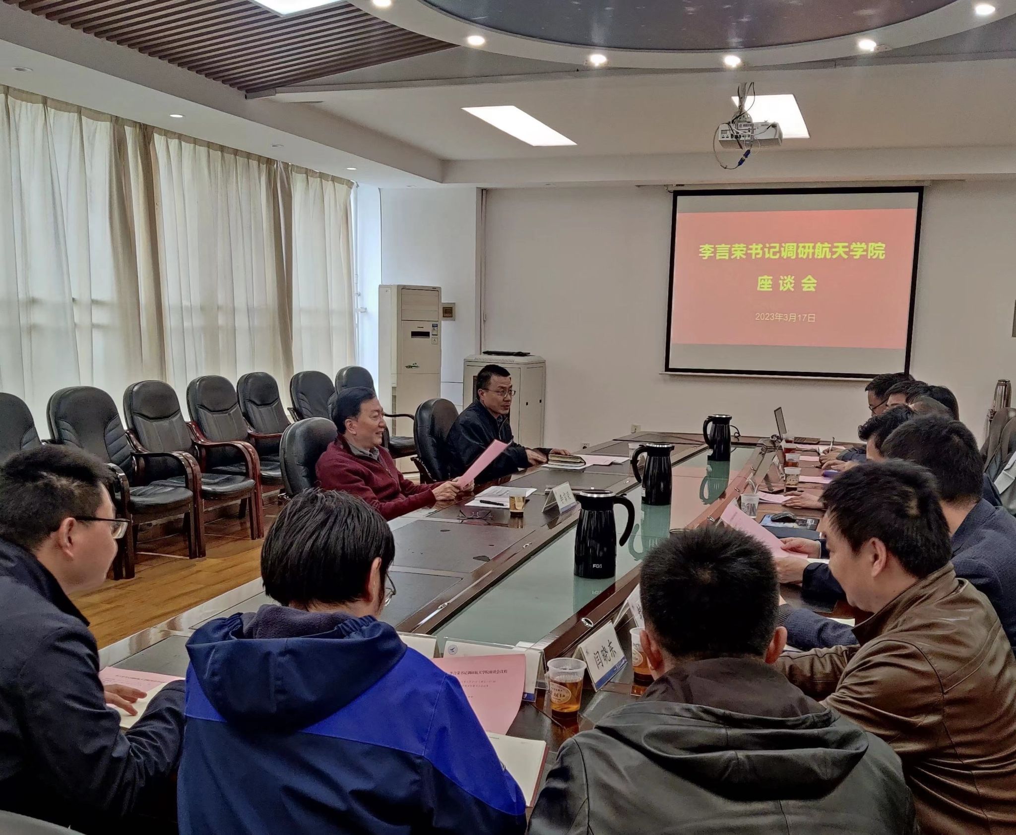 3月17日下午,公司党委书记李言荣来到tyc122cc太阳成集团调研指导工作,与公司领导班子成员、各研究所所长以及教师代表座谈交流。
