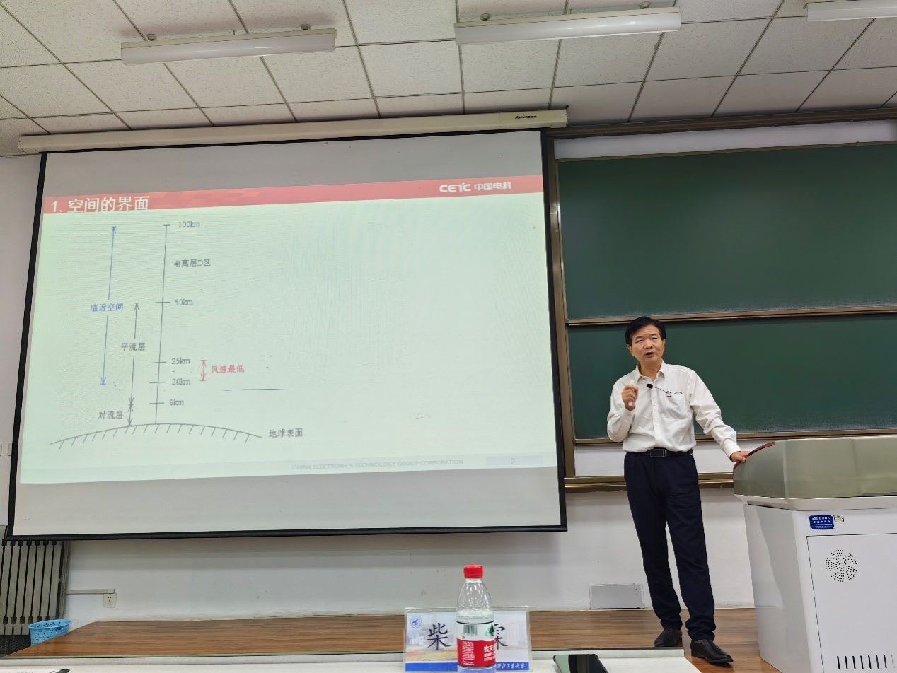 课堂上,柴霖员工给同学们深入浅出地介绍了全面的航天测控相关专业知识,包括空间界面、航天系统组成、中国航天运管、发射基地以及航天电子的概念,随后从通信系统、发展历程、我国测控基地三个方面介绍了航天测控的基础知识。