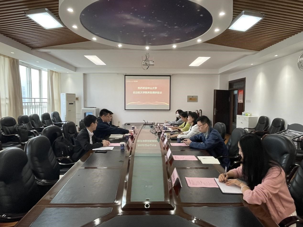 5月23日上午,中山大学航空航天公司党委副书记赵晓江一行赴tyc122cc太阳成集团交流座谈。航天公司党委副书记(主持工作)黄越、党委副书记韩冬、办公室副主任郑欣、教学办公室主任张研及院办相关工作人员参加了会议,会议由黄越主持。