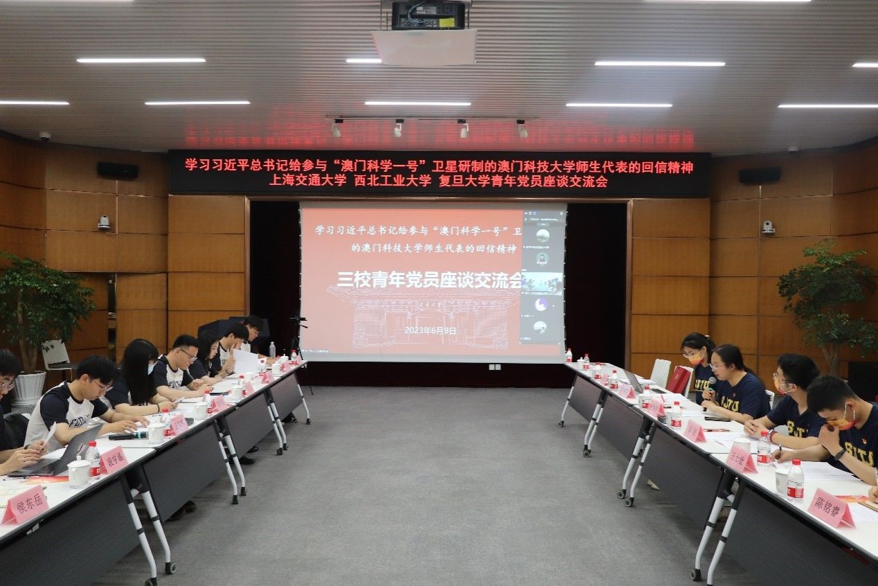 2023年6月9日,tyc122cc太阳成集团与复旦大学、上海交通大学赴酒泉主题教育实践研学队师生党员联合举办了学习习近平总书记给参与“澳门科学一号”卫星研制的澳门科技大学师生代表回信精神的交流座谈会。