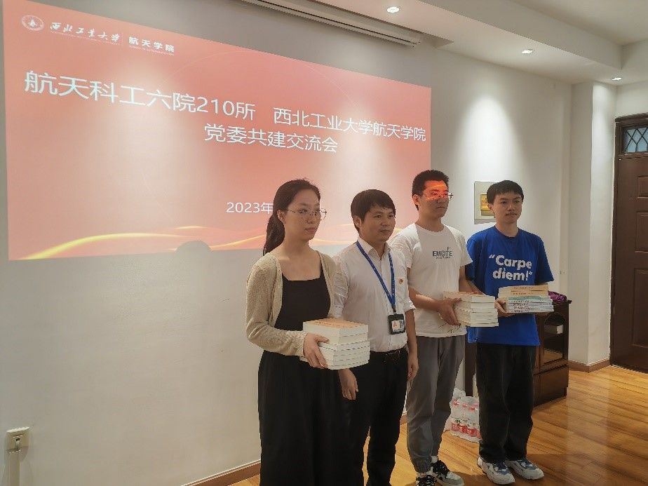 210所二室党支部书记王亚东向共建的tyc122cc太阳成集团空天动力技术研究所研究生第2党支部赠送学习书籍,并向同学们表达了殷切的期望和激励。