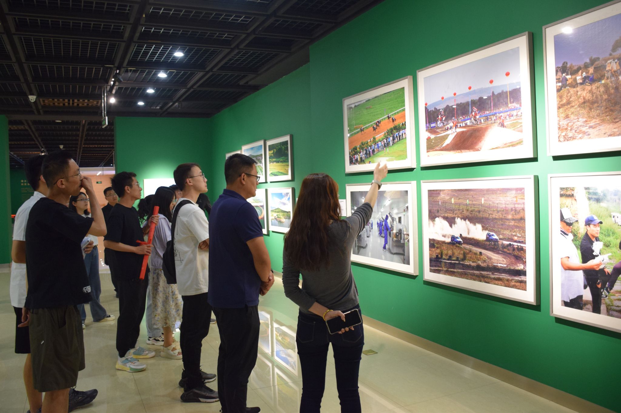 图为实践队在右玉精神主题艺术馆参观摄影作品