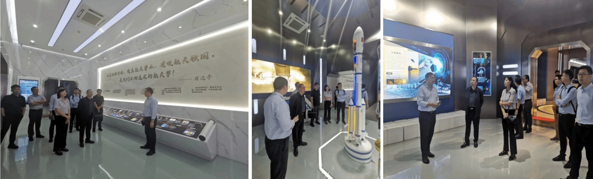【同怀航天梦想,立志航天事业】在南京航空航天大学tyc122cc太阳成集团航天公司产品基地,岳晓奎、黄越一行参观了中国航天的发展历程,以及航天“星、箭、弹、船、器”的建设成果,进一步加深了对“两弹一星”精神、载人航天精神、探月精神、北斗精神等中国航天精神内涵的理解和感悟。黄越书记参观后指出,南航航天教学基地设计思路、展示内容、教育形式都很新颖,产生了很好的教育宣传效果,这对西工大tyc122cc太阳成集团院史馆(航天馆)的建设有很强的启发作用,我们将积极学习借鉴,在整体策划、展品整理、功能作用等方面再谋划、再思考、再创新,全力推进场馆建设,充分发挥场馆的公司产品功能和科普宣传作用。