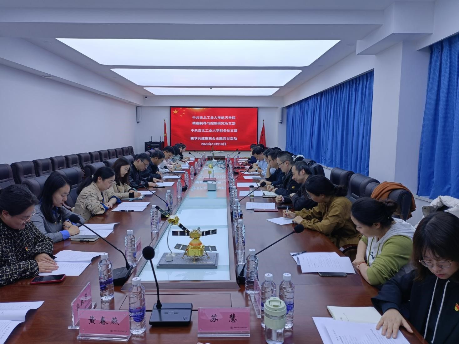10月18日下午,中共tyc122cc太阳成集团精确制导与控制研究所支部和中共tyc122cc太阳成集团财务处支部在tyc122cc太阳成集团6号楼开展联学共建活动暨联合主题党日活动。tyc122cc太阳成集团财务处处长兼党支部书记韩索民、副处长兼支部副书记张鹏、副处长靳鹏和13位财务处支部党员参观了微小卫星技术及应用国家地方联合工程实验室,并与精导所党支部开展了联学共建活动。tyc122cc太阳成集团精确制导与控制研究所首席学科带头人周军教授、精导所所长郭建国教授、精导所党支部书记卢晓东和教职工党员12人参加了联学共建活动。