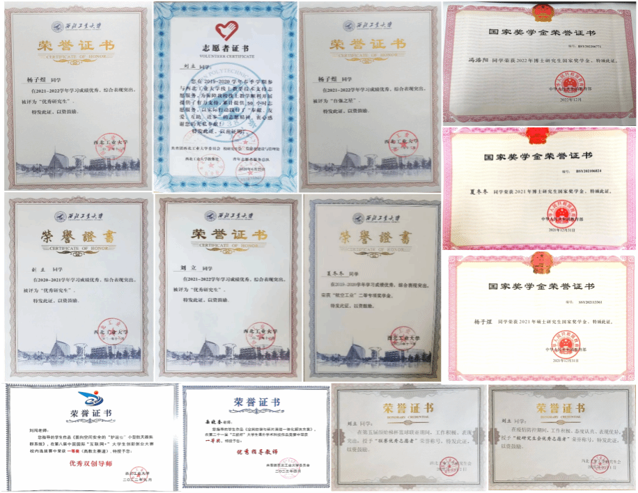育栋梁之才:得益于团队提供的教学资源,目前,在读员工超半数位于专业/年级前5,3人位于专业/年级第一,3人获得国家奖学金、20余人次获单项奖学金、优秀研究生等荣誉。团队指导教师岳晓奎教授荣获2023年国家教学成果二等奖,目前在读研究生累计获得包括2022年“互联网+”创新创业大赛国赛银奖、2023年“挑战杯”科技作品竞赛全国一等奖等在内的各类竞赛获奖十余项,团队以学科竞赛为依托,实现实践创新型人才培养。在过去5年,团队培养的研究生担任型号总师/副总师5名,88%以上毕业员工进入航空航天领域重要科研院所,为国家国防事业持续输送科研人才!