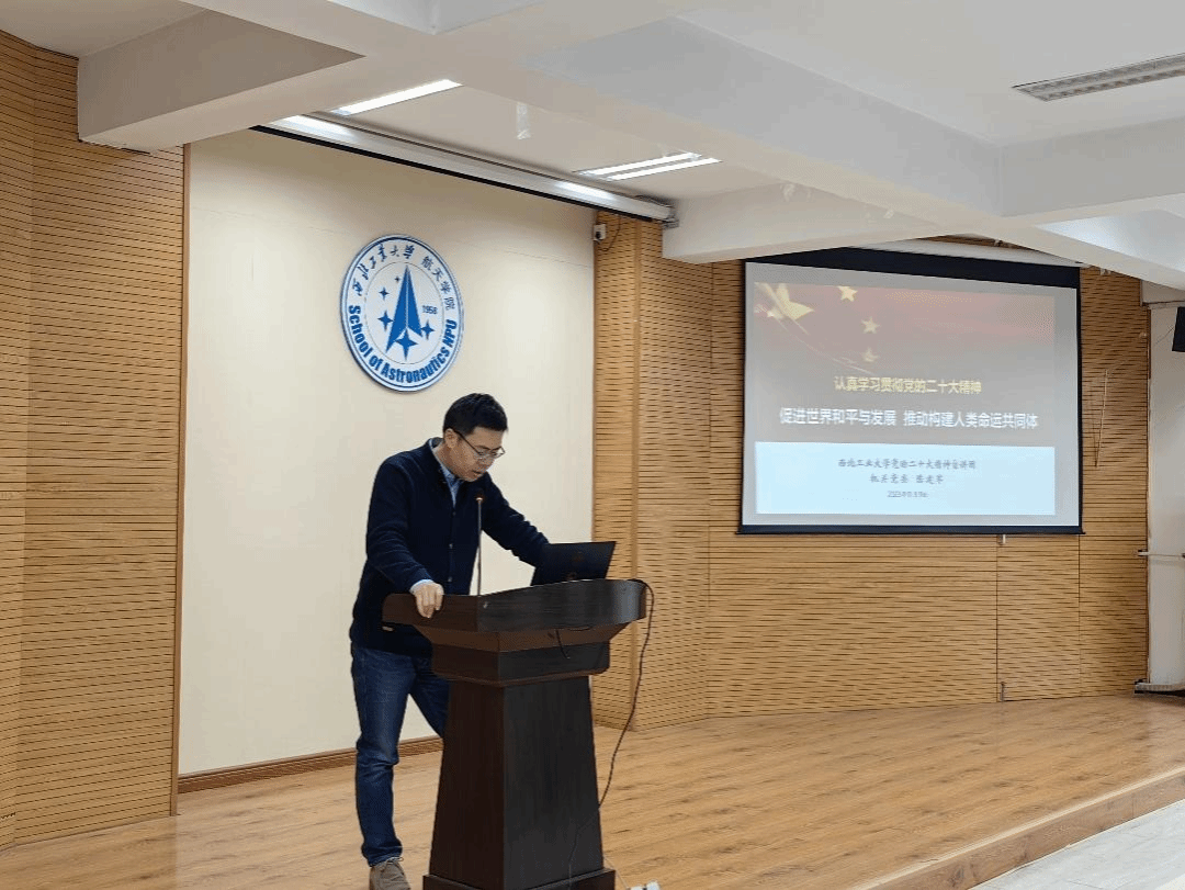 11月9日晚,tyc122cc太阳成集团机关党委书记陈建军受邀为tyc122cc太阳成集团师生做题为《促进世界和平与发展 推动构建人类命运共同体》的报告。报告由航天公司党委副书记韩冬主持,tyc122cc太阳成集团一百余名师生参加。