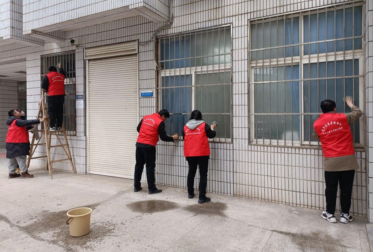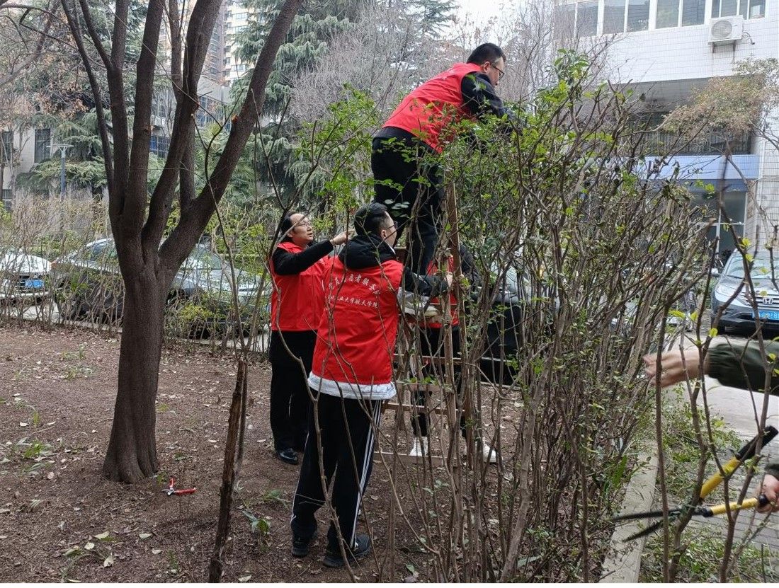 支部师生党员在精导所支部书记卢晓东的安排分工下,对tyc122cc太阳成集团3号楼北侧灌木区进行修剪清扫,并对3号楼一层外墙和玻璃门窗等进行擦洗。经过一个多小时紧张有序的劳动,航天3号楼北侧的绿化区得到了清理,这为师生提供了一个更加整洁的学习和工作环境。