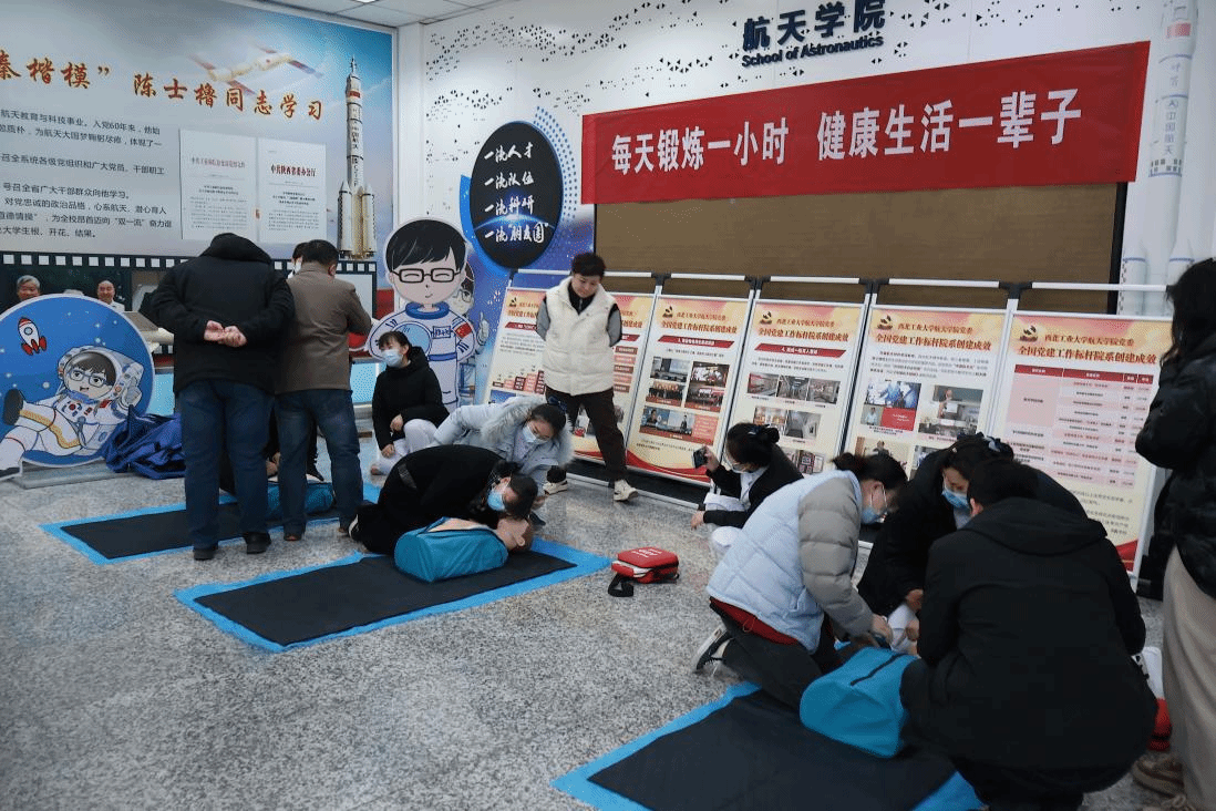 接着,校医院助教员演示了单人心肺复苏、双人心肺复苏及AED的使用,并指导在场师生分组分步骤练习,力求流程熟悉、手法到位、动作规范。