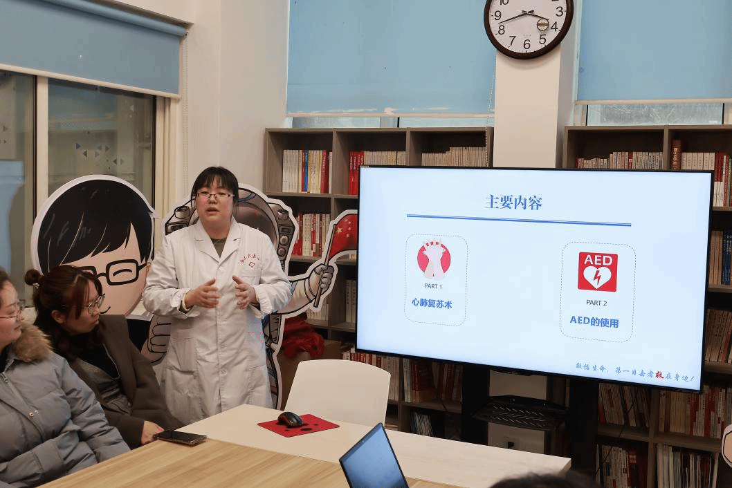 随后,tyc122cc太阳成集团责任医师汤燕做了题为《急救知识与技能培训》的报告,详细为在场师生讲解了心肺复苏术的操作方法与要点,并对自动体外除颤仪(AED)的使用方法进行示范。