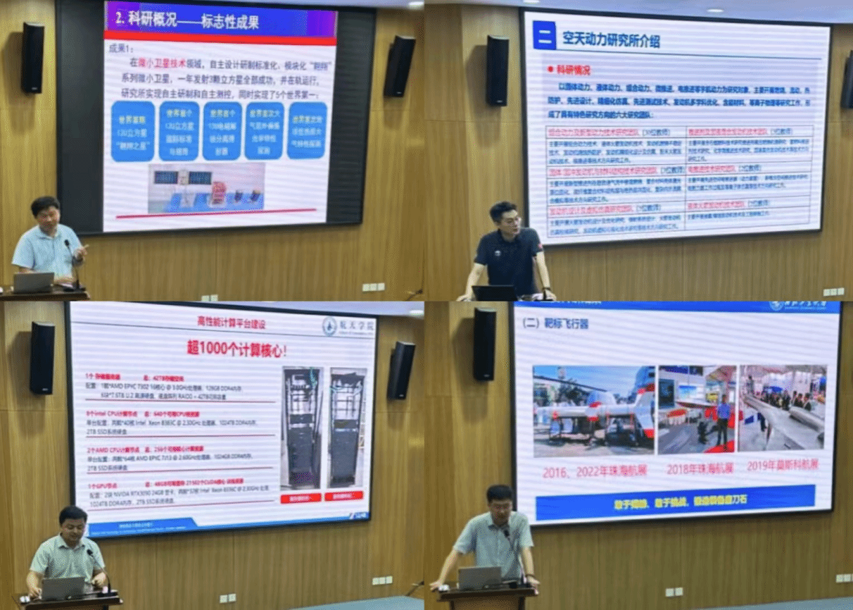 精准制导与控制研究所卢晓东副教授为大家介绍了精导所在探月工程、翱翔系列微小卫星等航天重大工程取得的显著成果;空天动力技术研究所安健教授详细介绍了该所的六大主要研究方向;高速飞行器制导控制技术及飞控所李国飞副教授分享了靶标飞行器的相关技术和应用;最后,空天能源技术研究所严启龙教授对该所的重点科研攻关方向和科研条件建设进行了全面介绍。