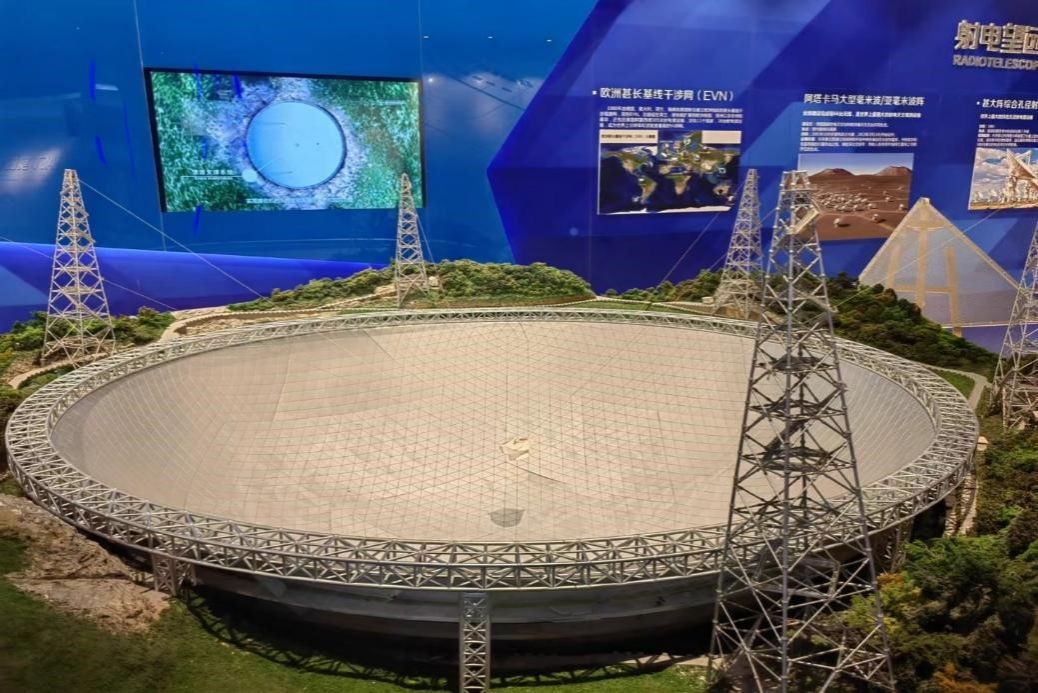 上午,实践队赴贵州省黔南布依族苗族自治州平塘县中国天眼科普基地进行参观学习。中国天眼作为国家“十一五”重大科技基础设施建设项目,是国家科教领导小组审议确定的国家九大科技基础设施之一。其约占地30个足球场,依托喀斯特巨型洼地的独特地形条件建设而成,灵敏度极高、是当今世界上最大单口径、最灵敏的射电望远镜。