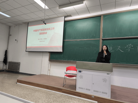 培训伊始,孙艳梅从递交入党申请书、确定积极分子、确定发展对象、接收为预备党员、成为正式党员等五个环节中介绍了老员工的入党流程,并对每个阶段筛选和考察方法进行了详细的介绍和说明。