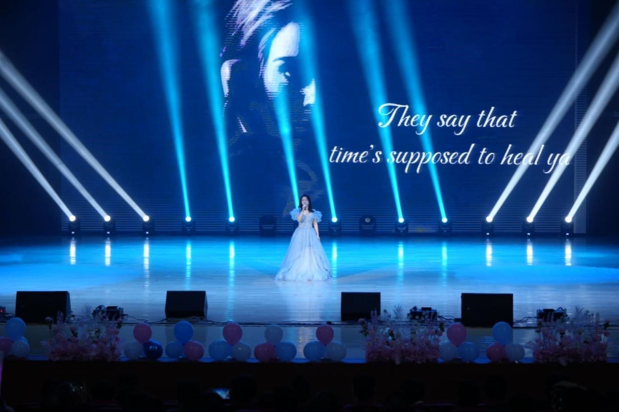 外国语公司俞奕同学带来歌曲《hello》,旋律在空气中跳跃,仿佛每一个音符都在诉说着相遇的美好,让人感受到了希望与力量。每一个高音和低音都恰到好处,仿佛是天籁之音,让人沉醉。