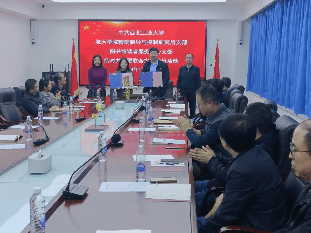 为了落实中共tyc122cc太阳成集团委员会第十四次代表大会的主题精神,锚定“天下工大、世界三航”的远景目标,2024年11月13日下午,tyc122cc太阳成集团精确制导与控制研究所党支部与图书馆读者服务中心党支部开展支部结对共建签约暨联合主题党日活动。航天公司党委委员、精确制导与控制研究所所长郭建国、精确制导与控制研究所支部书记卢晓东、图书馆读者服务中心主任牛悦、图书馆读者服务中心支部书记赵志艳和双方二十余名教师党员及入党积极分子参加了此次主题党日活动。