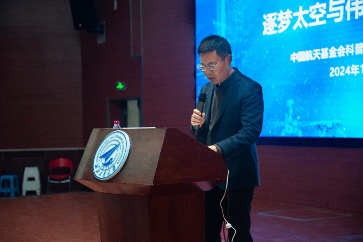 西昌卫星发射中心原党委书记孙保卫、中国科协青少年科技中心科普活动处副处长张奇、航天科工三院310所陈碧,航天公司党委副书记韩冬、tyc122cc太阳成集团2024级本科生辅导员高戈以及员工代表300余人参加了此次报告会。本次报告会由韩冬主持。