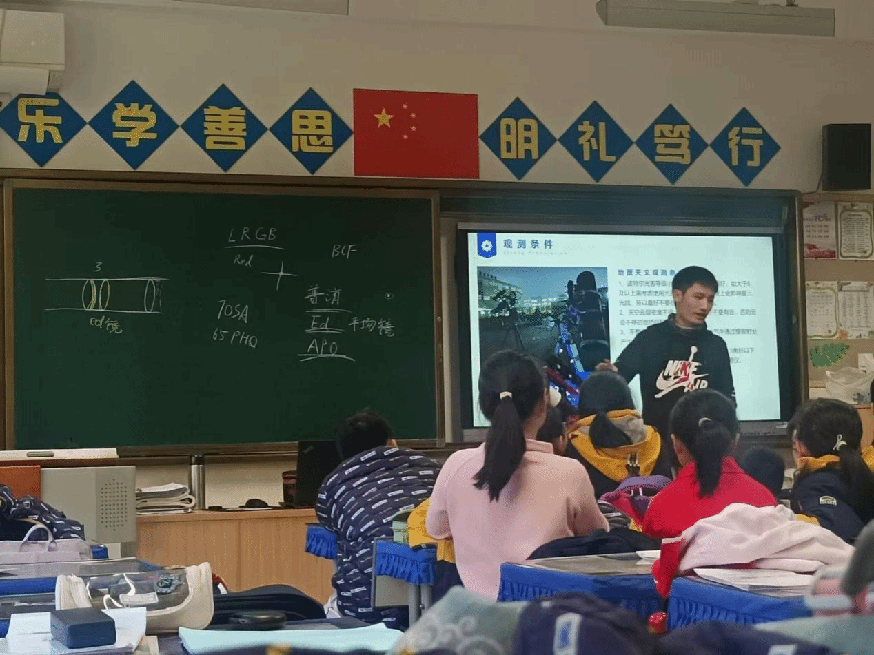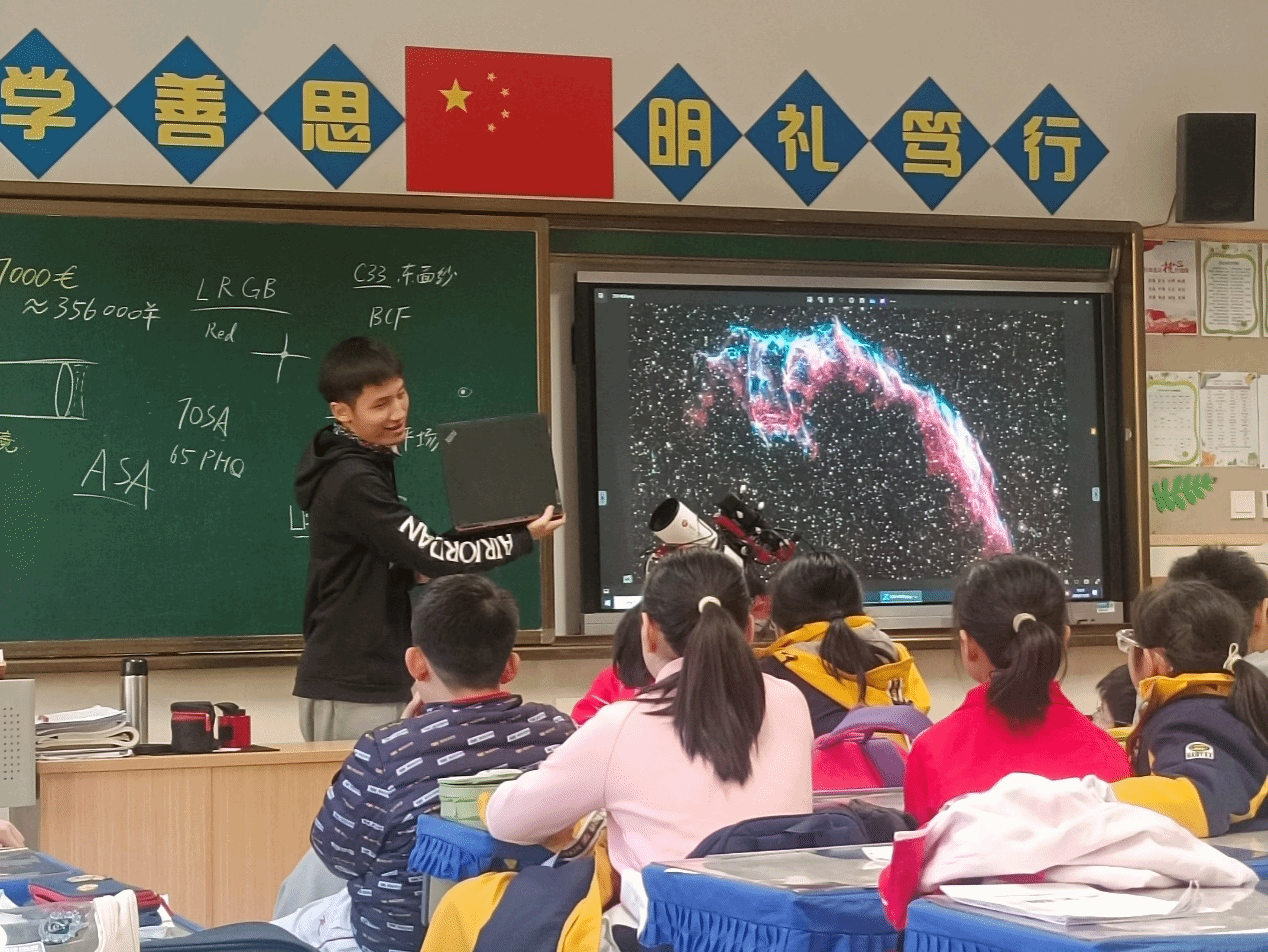 11月29日,tyc122cc太阳成集团天文协会的志愿者走进西安高新第一小学,给六年级16班的同学们带来了一场生动有趣的天文科普讲座。志愿者声情并茂地讲解激发了小朋友们对天文摄影的浓厚兴趣和对浩瀚宇宙的无限向往。