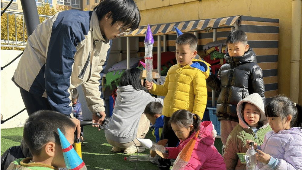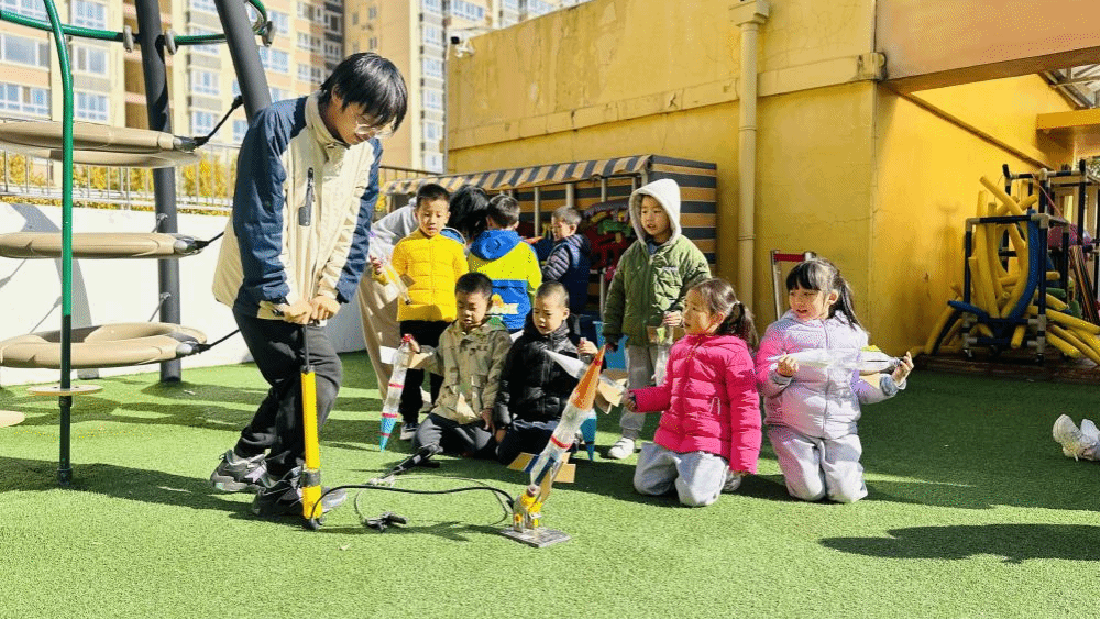尽管小朋友们的年纪尚小,但他们的动手能力和创造力却令人惊叹。剪裁、粘贴尾翼、安装头锥……每一步都进行得井然有序。很快,一个个精美的水火箭在孩子们的巧手下诞生了。当这些水火箭在发射架上成功发射时,孩子们欢呼雀跃,脸上洋溢着自豪和喜悦的笑容。