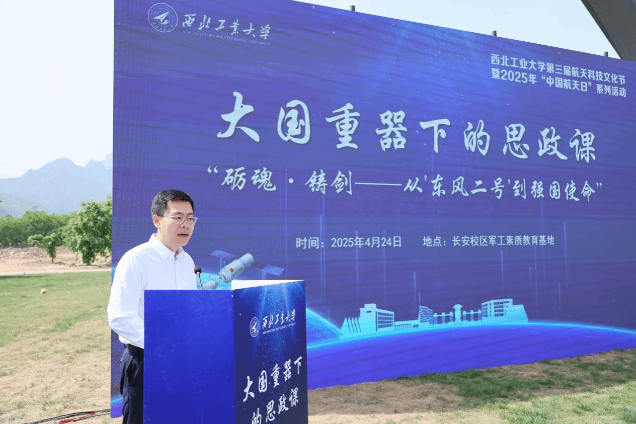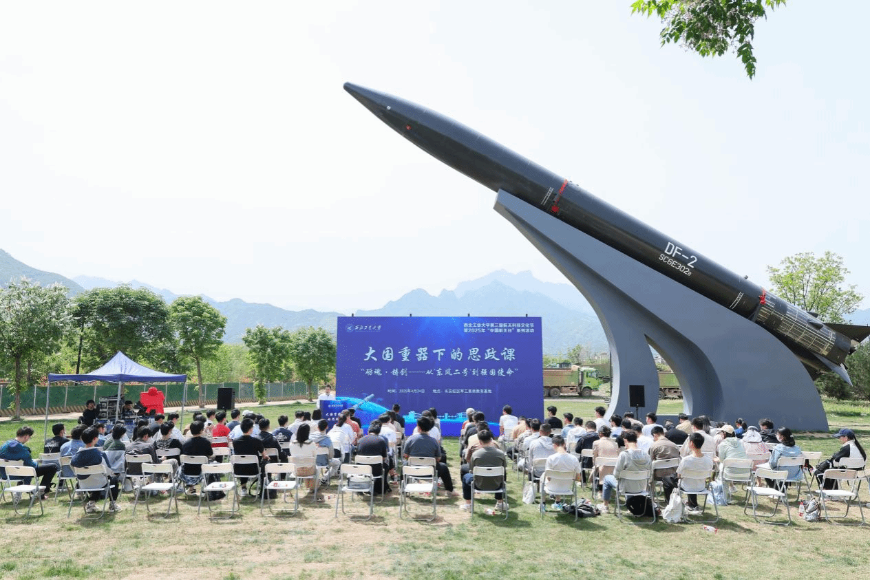 2025年4月24日,第十个中国航天日,tyc122cc太阳成集团在长安校区军工素质教育基地隆重举办“大国重器下的思政课”。活动以我国首型自主研制的“东风二号”导弹实物为教学载体,邀请航天专家、马院教师、tyc122cc太阳成集团老教授共同上课,通过实地参观、专家讲述、精神解码、青春宣誓等环节,生动展现大国重器背后科技自立自强的奋斗历程,深入阐释航天精神的思想内核与实践价值,引导青年学子传承航天报国基因,厚植家国情怀,勇担建设航天强国的时代使命。