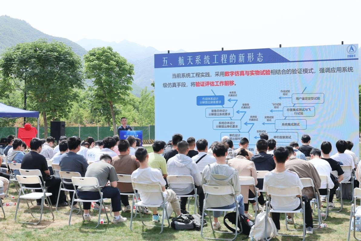 在第二篇章“精神传承”中,航天专家、公司员工王欣通过详实的研制案例,阐释了航天系统工程理论形成的历史逻辑,并结合新时代航天强国建设需求,重点解析了系统工程方法论当下的发展要求,生动展现了航天报国精神从历史传承到创新发展的实践路径,令在场青年深受鼓舞。