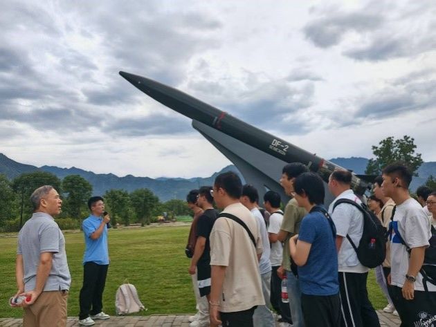 最后,师生们来到公司军工素质教育实践中心户外停机坪,参观包含DF-2导弹及运-20、歼-7、直-5等多种机型。通过讲解员详细介绍,让师生们深刻体会“三航”领域攻坚克难的奋斗历程。运-20运输机在抗疫救灾中的卓越贡献、歼-6护卫长空的飒爽英姿,生动诠释了“国之重器”背后的科学家精神与报国情怀。一架架承载着梦想与荣耀的飞机,生动展现了"三航"(航空、航天、航海)精神中敢为人先、攻坚克难的勇气和担当。