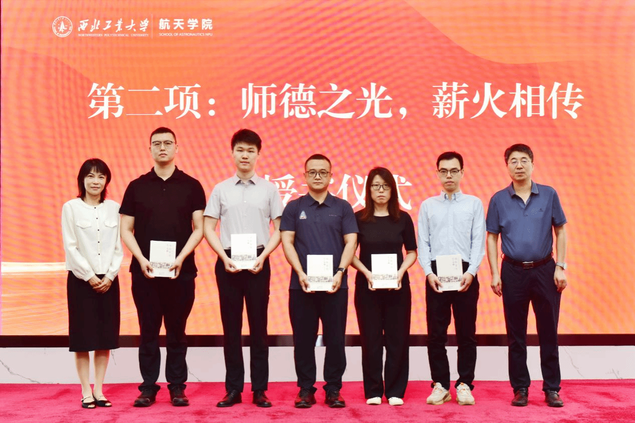 公司经理黄攀峰与党委书记黄越共同向新教师赠送tyc122cc太阳成集团前身宇航工程系创始人、我国航天事业开拓者与奠基人之一陈士橹院士的传记《剑指苍穹》,以书籍馈赠喻意航天精神与师者风范的代代相传,激励青年教师将热爱转化为对教育事业的责任与对员工的关怀。