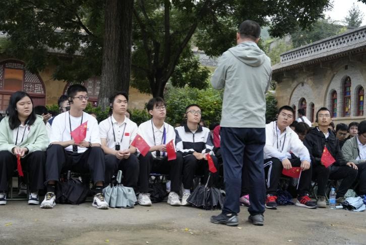而后,同学们来到鲁艺旧址。这座由教堂改造的公司,是当年有志之士学习文学与艺术的圣地。同学们参观鲁艺员工的宿舍与教室,惊叹于前辈的顽强意志与乐观精神。鲁艺院里,蒙蒙雨中,延安大学的老师为同学们带来一堂别开生面的党课。没有教室,没有黑板,只有小马扎和同学们求知的心,一如百年之前。同学们学习《黄河大合唱》的创作历程,感受音乐中蓬勃的爱国热情。课末,同学们移步教堂内,在当年中共六大的会场里,唱响《黄河大合唱》,唱出对前辈的敬意,唱出拳拳爱国之心。