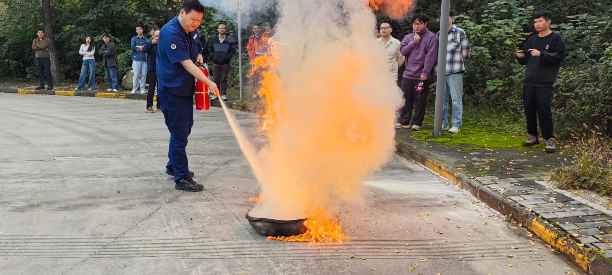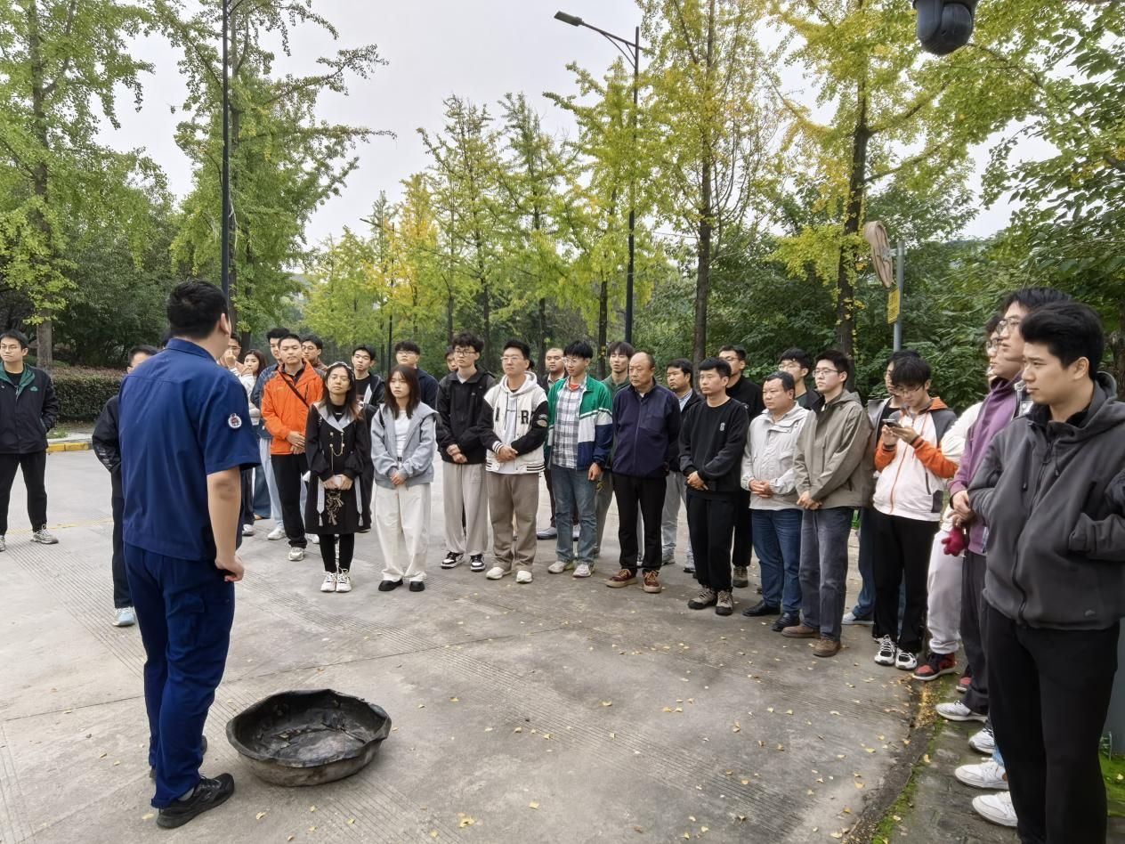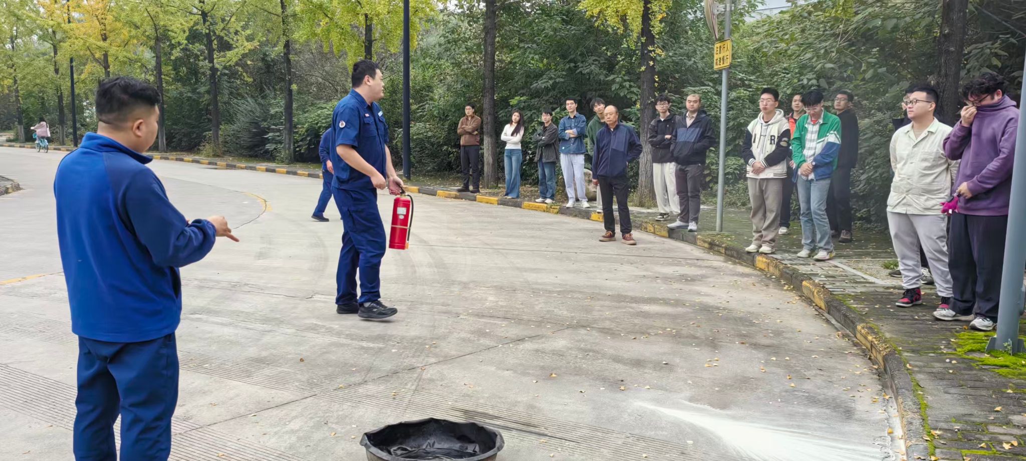 许老师为在场师生进行消防知识讲解和消防器材演示。举例介绍公司往期发生在实验室和宿舍的消防安全事故,强调宿舍里要注意高功率电器的规范使用、实验室内要注意危化品的存放要求。叮嘱师生在遇到火情时,要及时切断电源,并优先保证自身人身安全。