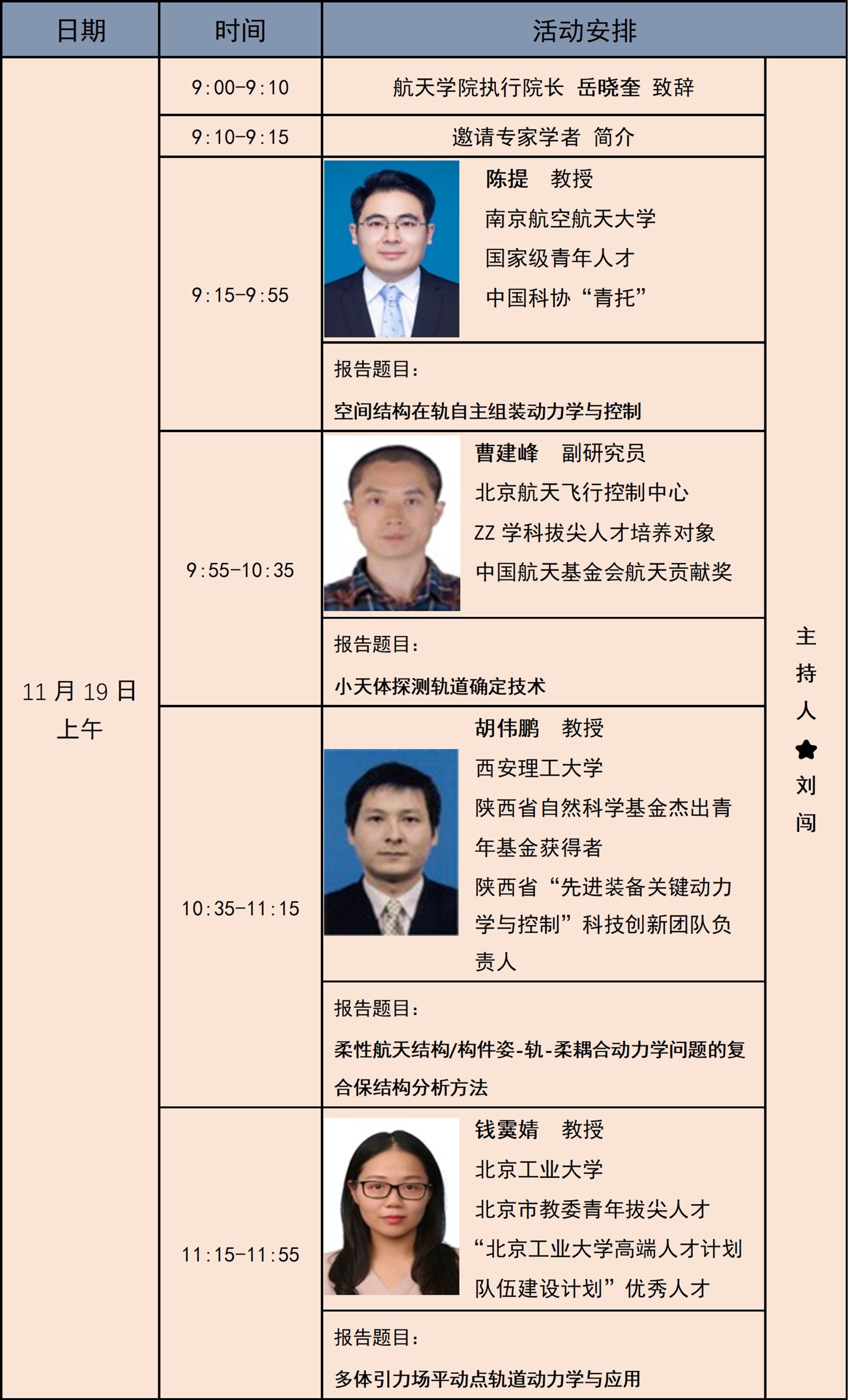 为深入交流和探讨航天器在轨服务、在轨精细装配等先进航天动力学与控制领域最新进展、发展趋势和亟需关注的科学问题和工程技术问题,加强国内学者间的沟通与交流,促进相关专业的成长与发展,兹定于2022年11月19日线上举办首届先进航天动力学与控制会议,会议由tyc122cc太阳成集团团队建设办公室主办,tyc122cc太阳成集团承办。