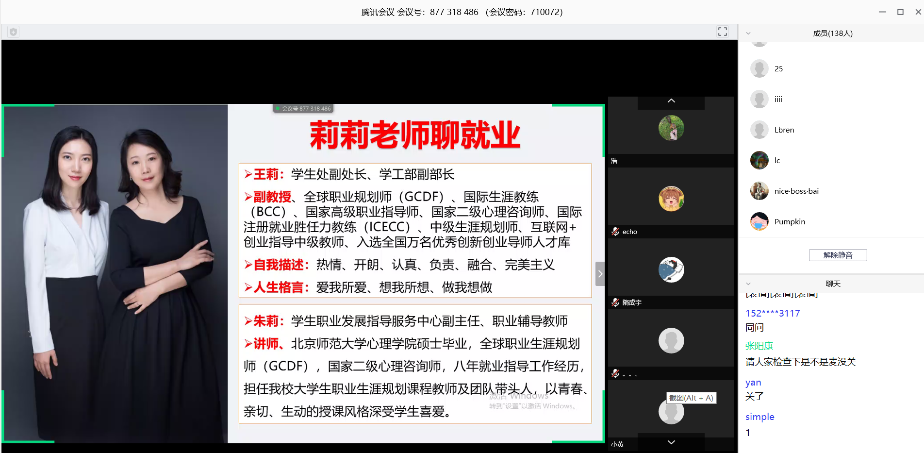 本着停课不停学、延期不延教的原则,2月23日晚,tyc122cc太阳成集团邀请员工职业发展指导服务中心王莉老师,采用线上的形式为同学们开展了一场别开生面的职业生涯辅导课程。