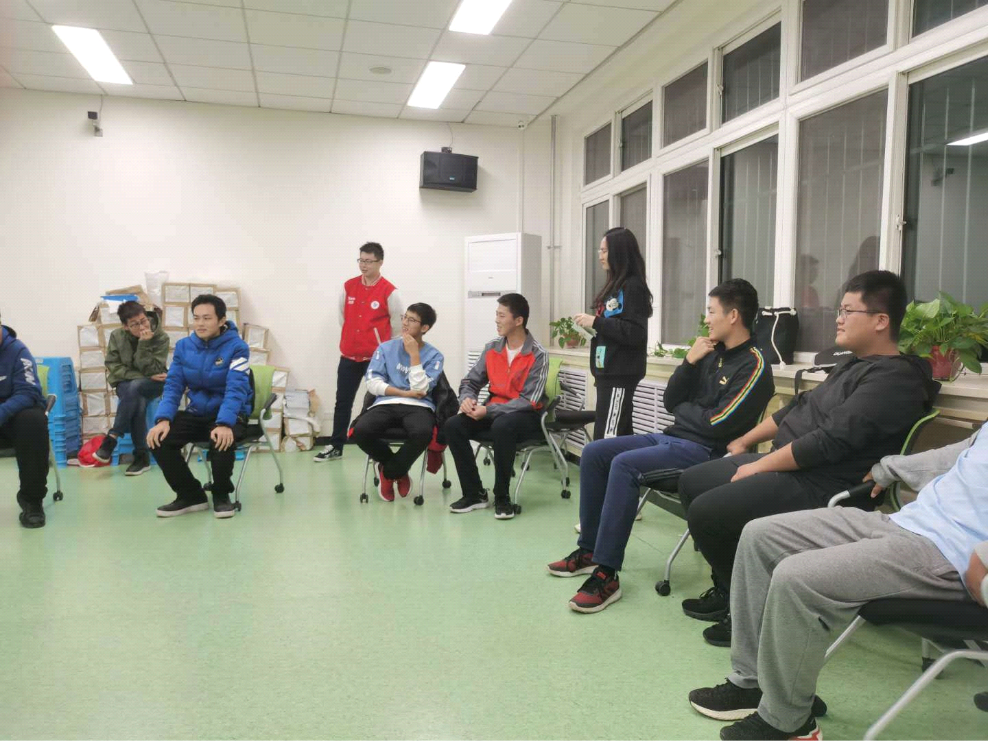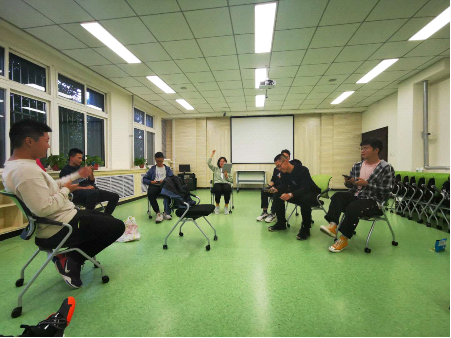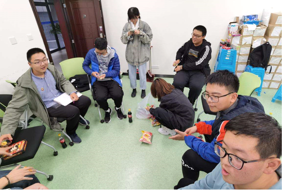 活动开展伊始,负责人安排大家就坐,但大家多多少少都有些拘谨,仍是选择与更熟的舍友围成一起,但后来伴随着大小游戏的进行,小小房间里的氛围已经不自主地热闹起来。