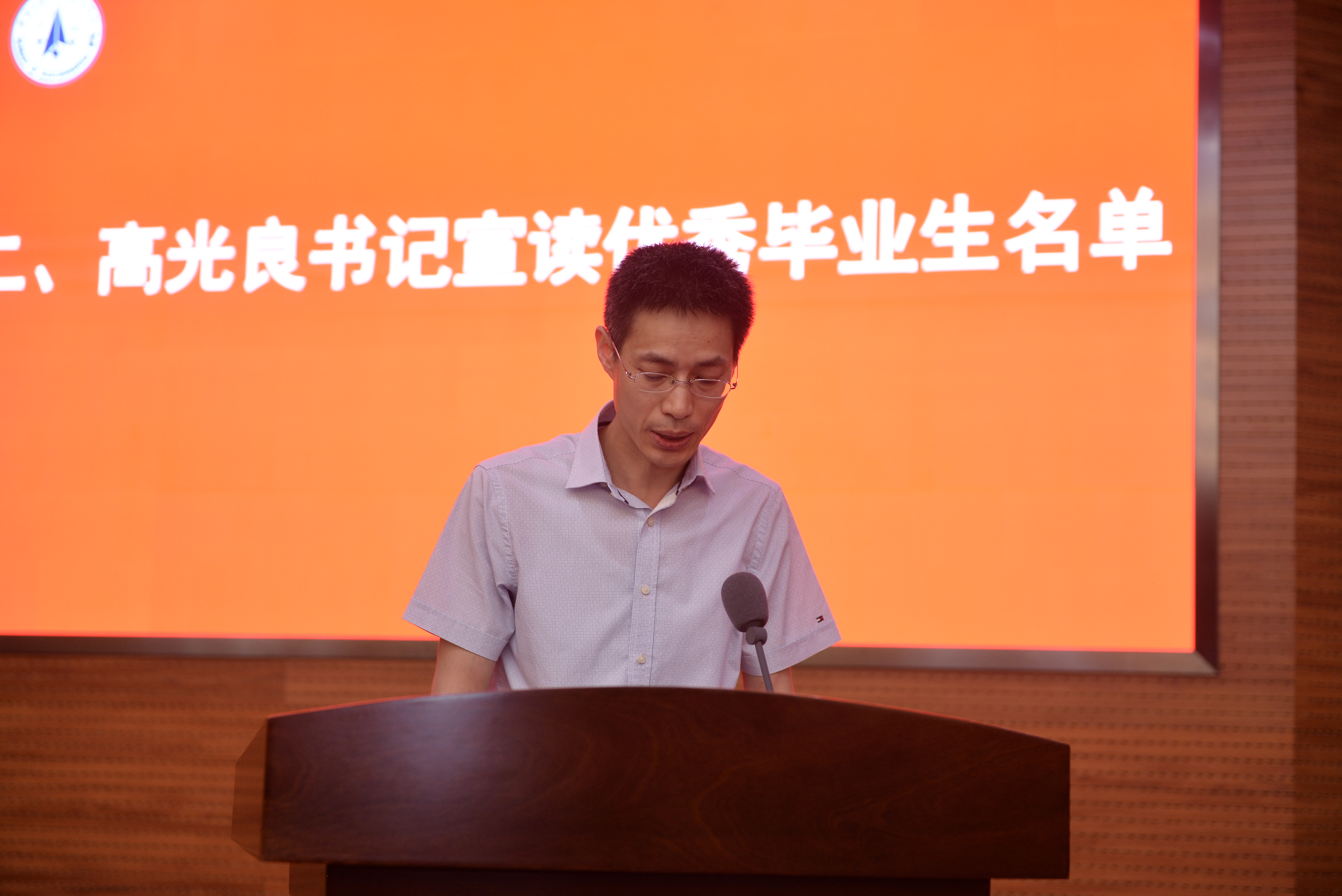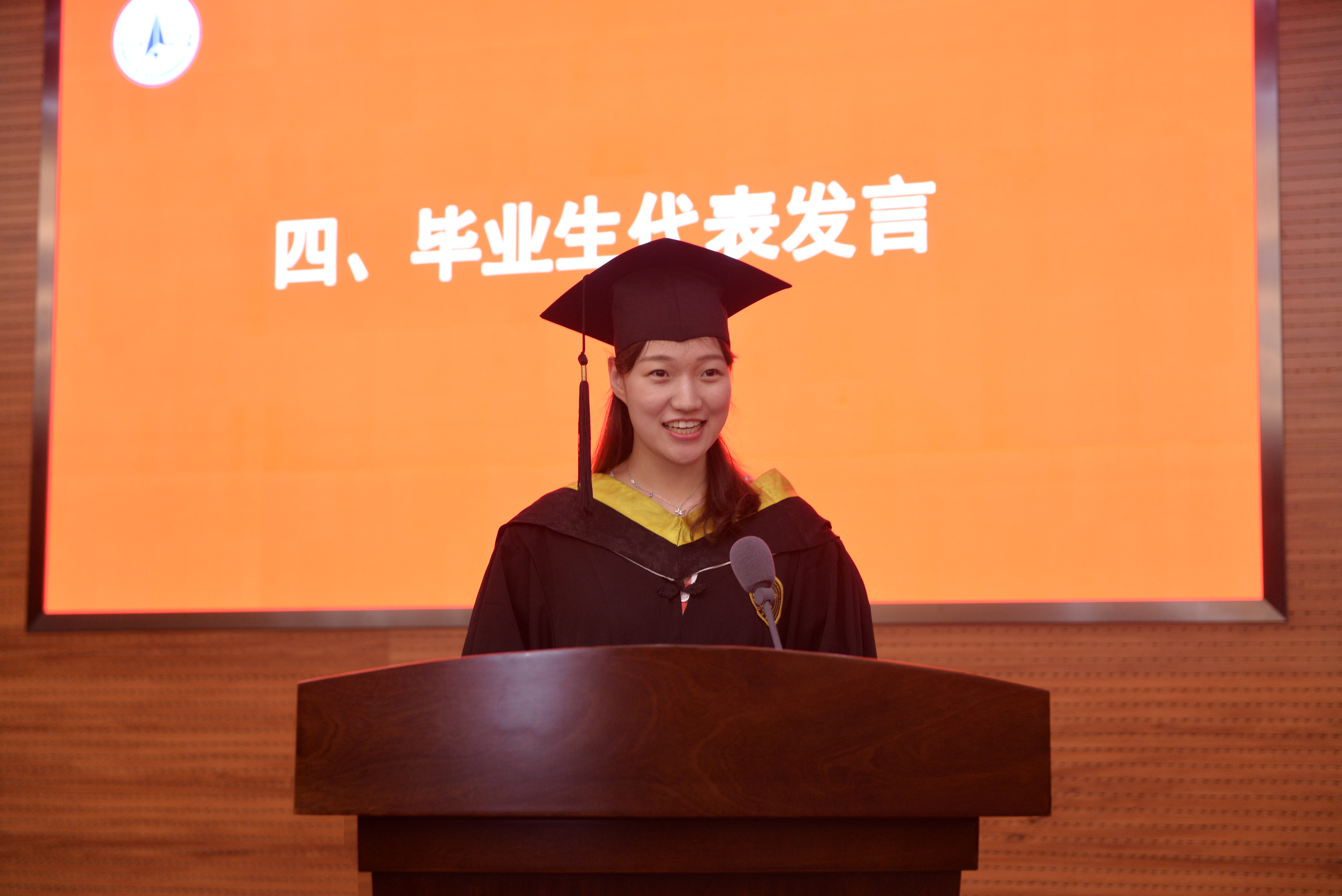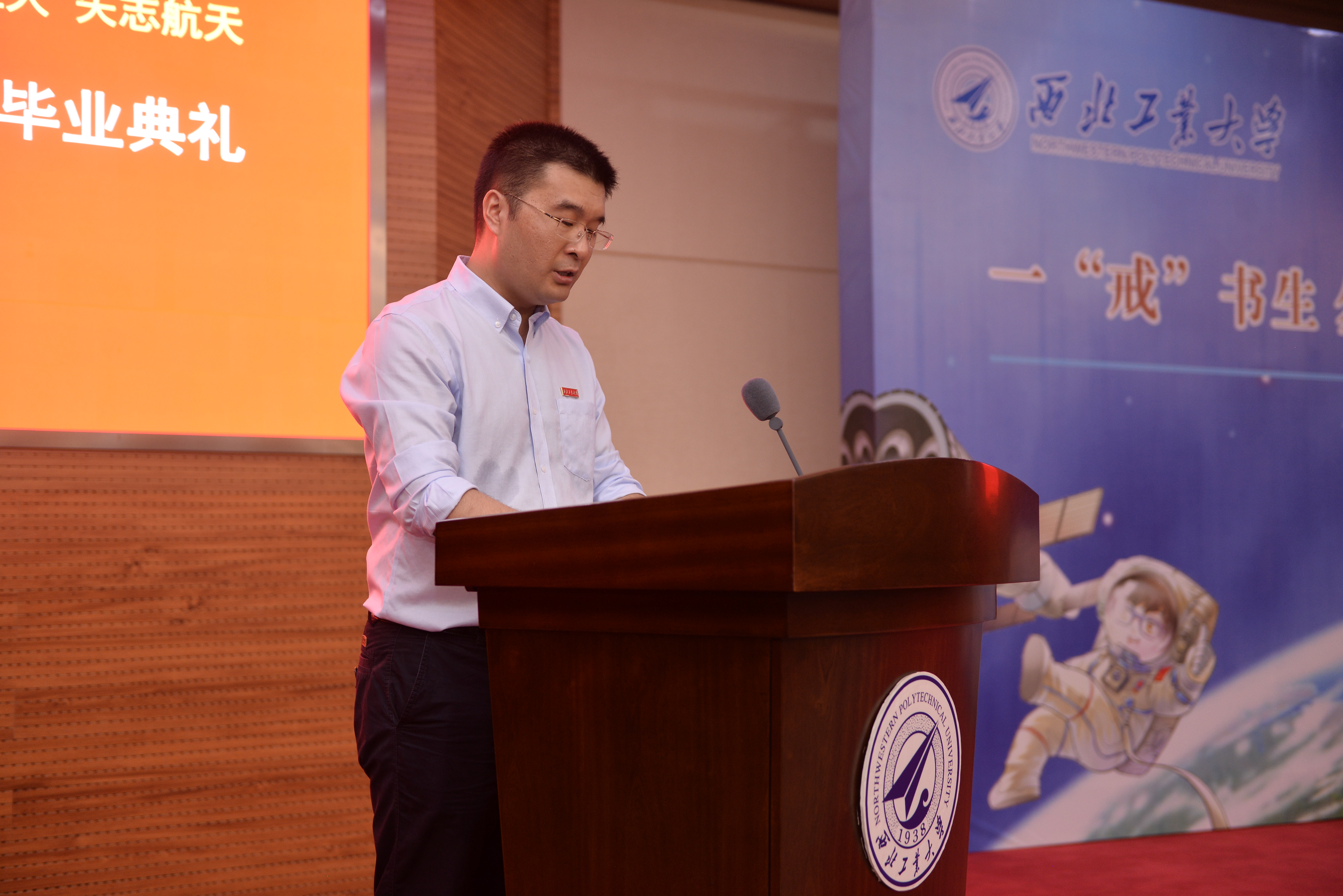 毕业生代表马孟奇同学发言,言语中表达了对母校的不舍,又饱含感激之情,立志将“公诚勇毅”的校训和“三实一新”的校风内化于心,外化于行,继续传承和发扬工大精神、航天精神,只争朝夕,不负韶华,星辰大海,一苇以航。接下来带领公司全体毕业生宣誓:胸怀祖国、发愤图强、埋头苦干、永攀高峰,为把我国建设成为世界科技强国、航天强国作出新的更大的贡献。