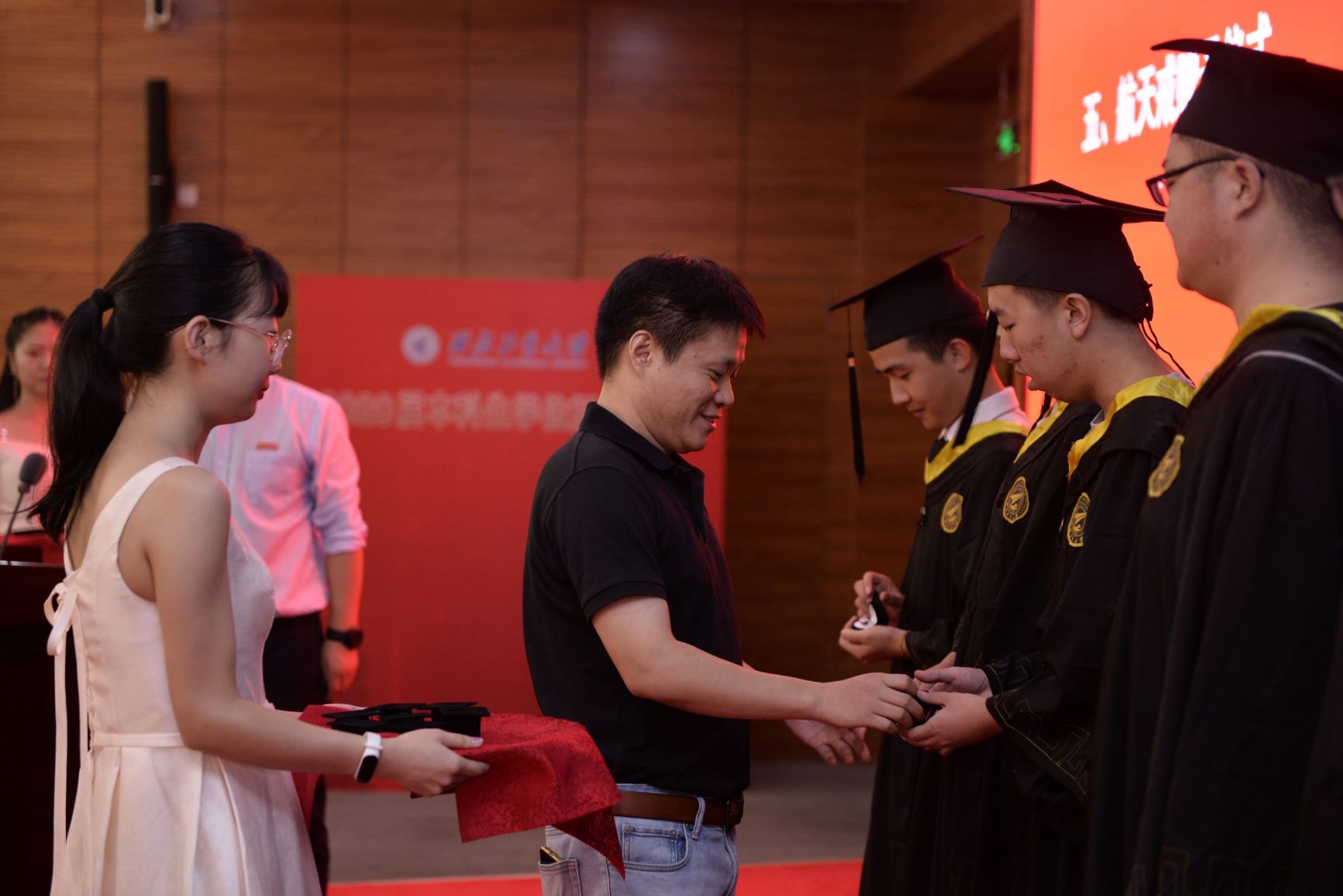 随后,tyc122cc太阳成集团领导、各研究所所长、班主任为每一名毕业生赠送了“航天戒”。tyc122cc太阳成集团寄情于物,将“公诚勇毅”的校训与“航天精神”相结合,推出“天之爱”系列毕业戒指。本科银色戒指,纯粹、简洁,象征着初出茅庐未经打磨的航天学子,这枚戒指将带着师长“勿忘初心”的叮咛和大家对实现航天梦的承诺,伴随着每一名2020届本科毕业生在新的岗位上不断前进。