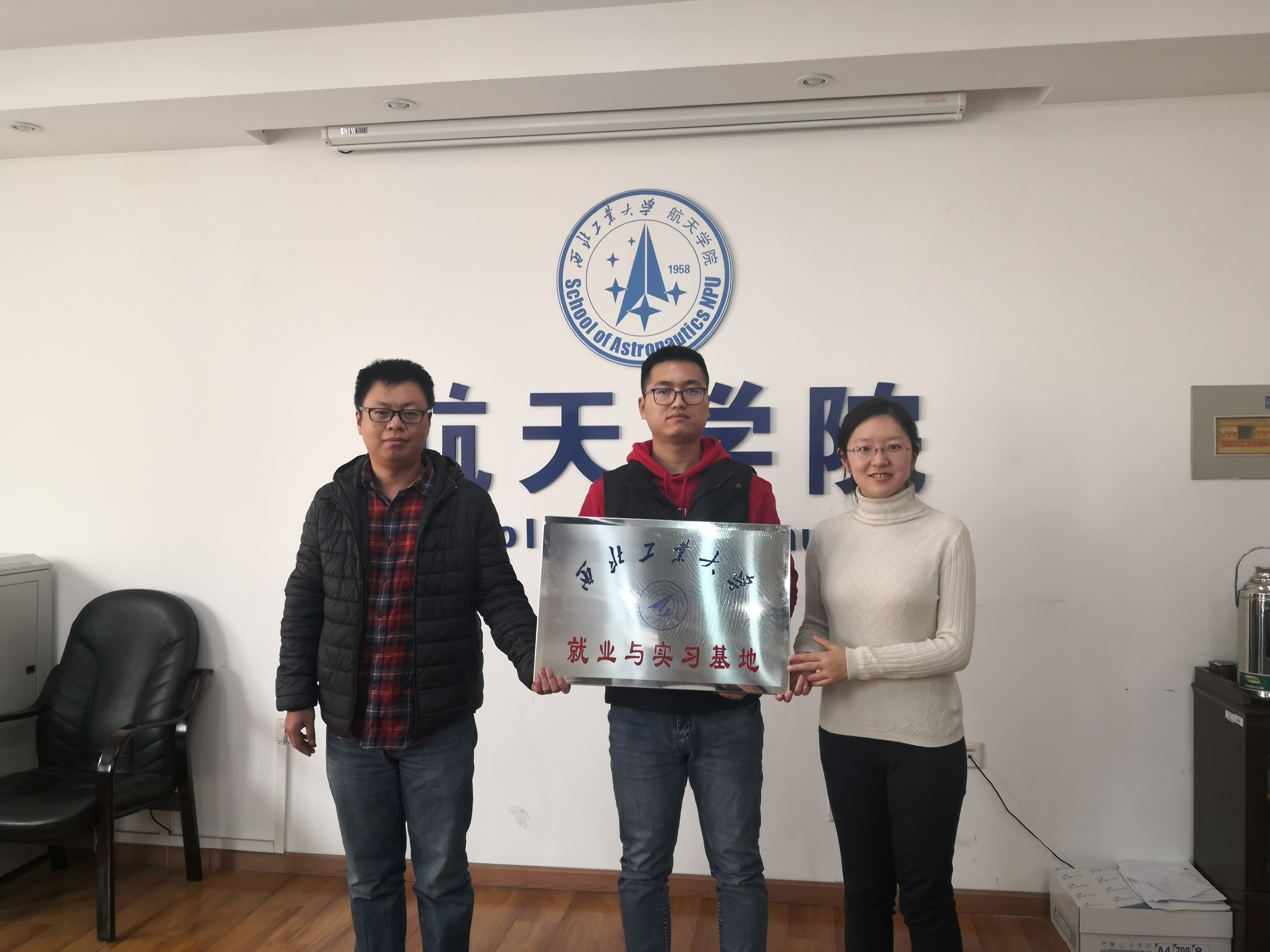 2019年12月18日下午15:00,在tyc122cc太阳成集团四号楼413会议室,隆重举行tyc122cc太阳成集团与陕西天捍航空科技有限公司联合成立就业实习基地挂牌仪式。tyc122cc太阳成集团辅导员巴燕、谭明虎、陕西天捍航空科技有限公司邱朝共同出席此次挂牌仪式。
