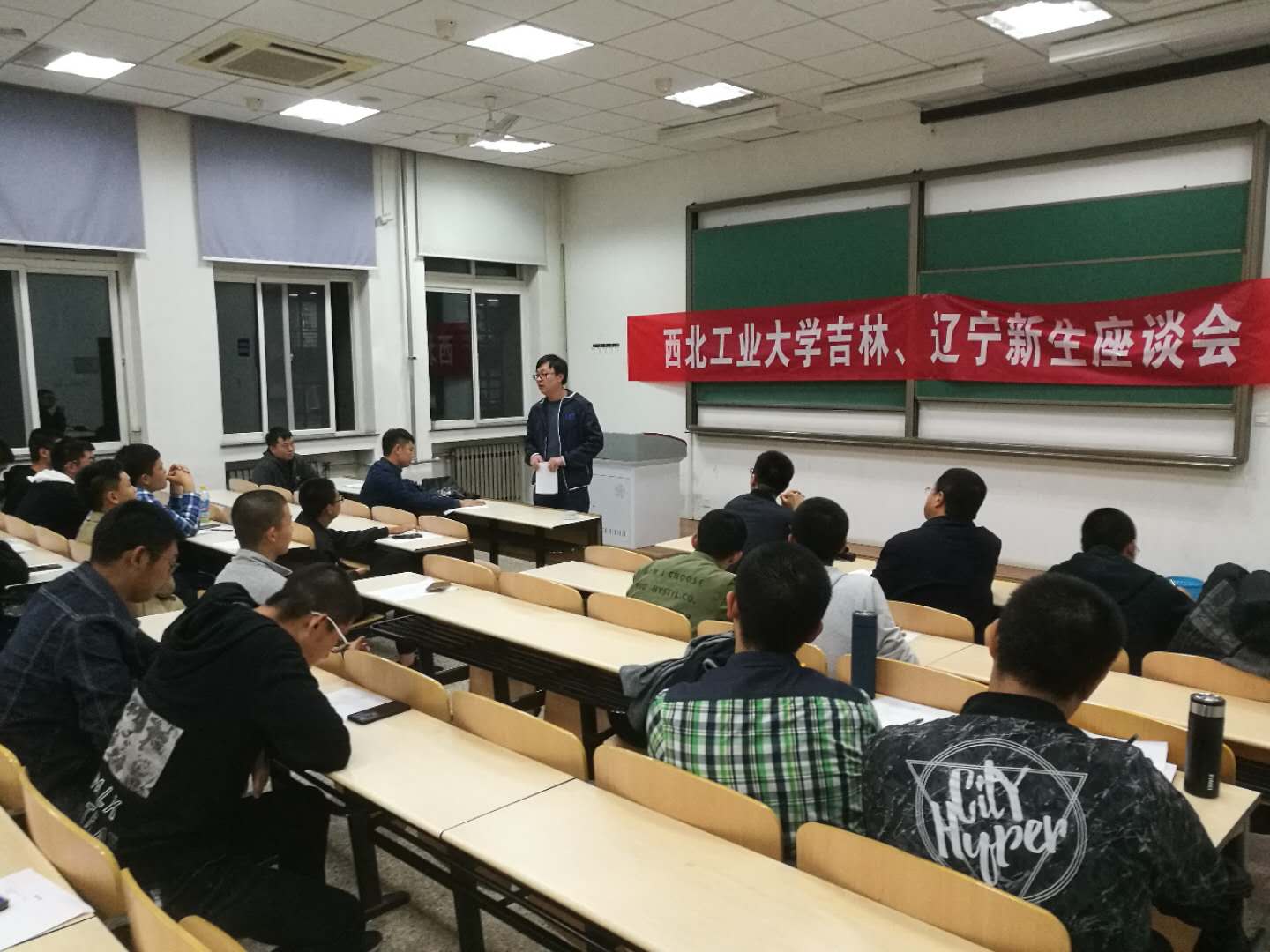 2018年9月27日晚,tyc122cc太阳成集团2018级吉林、辽宁新生见面会在长安校区举行,校本科招生办公室韩寅奔、tyc122cc太阳成集团办公室主任金秉乐、tyc122cc太阳成集团吉林、辽宁招生组老师参加座谈会。