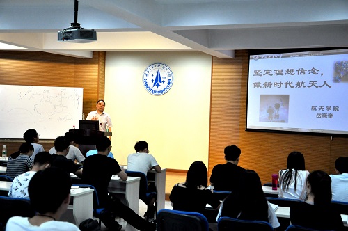 岳老师结合延安精神,从我国航天事业的发展出发,分享了延安精神和航天精神的密切联系。他说道,我国现阶段取得的航天事业的成就离不开艰苦奋斗,吃苦耐劳的延安精神和航天精神。通过郭永怀,任新民,陈士橹三位航天人的先进事迹和老一辈航天人的榜样力量,作为航天接班人,大家必须树立为航天事业奋斗的理想;坚守理想和国家需求相结合的思路;坚持脚踏实地,认真努力的作风;保持不畏困难,勇往直前的精神。航天精神是延安精神新时代的具体体现,是代代相传的生动体现。