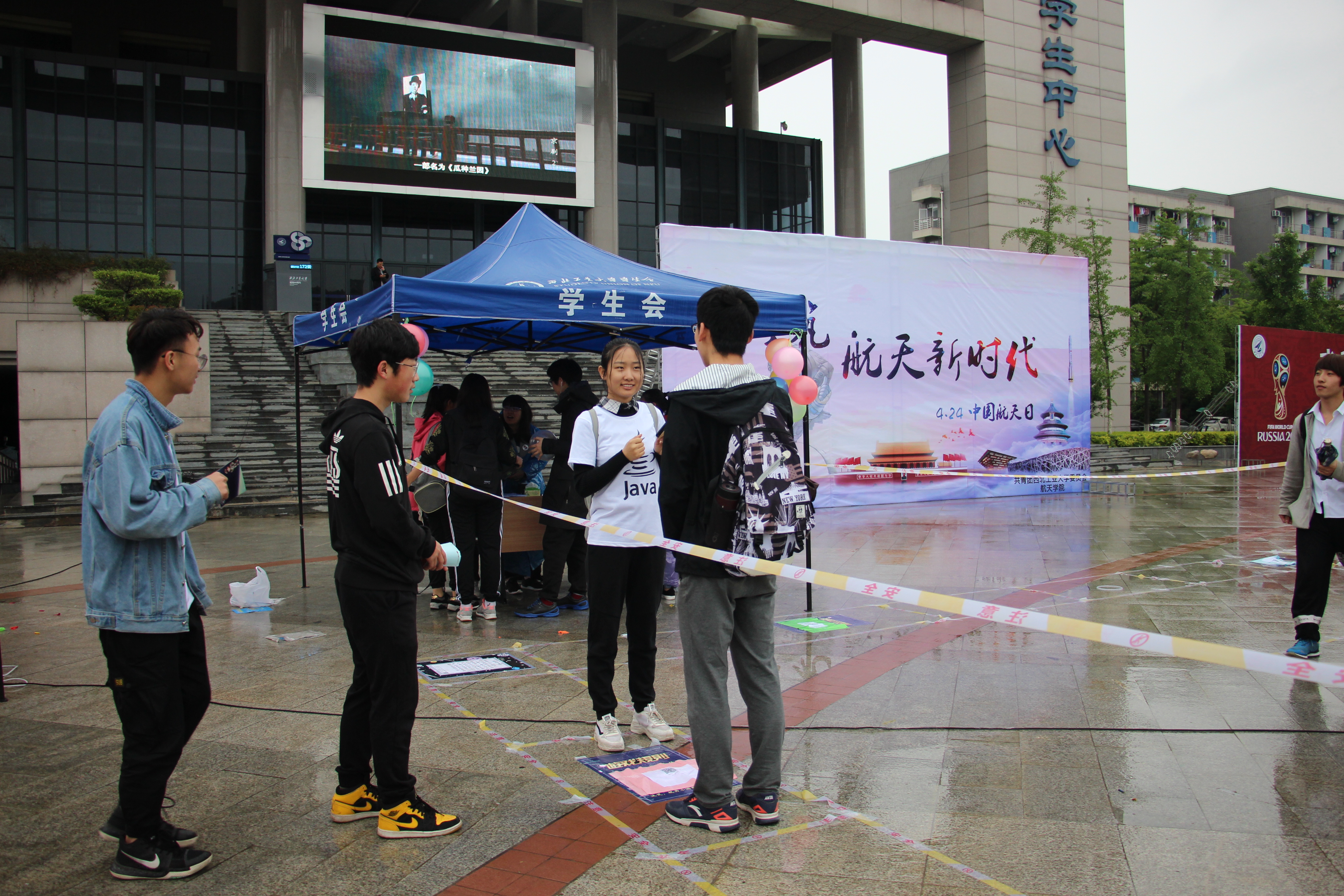 情缘启真,翱翔四海八荒;筑梦航天,问鼎霄汉苍穹。为迎接2018年“中国航天日”,由校团委主办、tyc122cc太阳成集团团委承办的“航天嘉年华”活动,4月24日在长安校区举行。铭记峥嵘之岁月,传承精神之纲要,遥呼青年之志,弘扬探索之激情,整场嘉年华始终深刻围绕航天主线,以生动形象的方式向同学们普及航天知识,弘扬航天精神。
