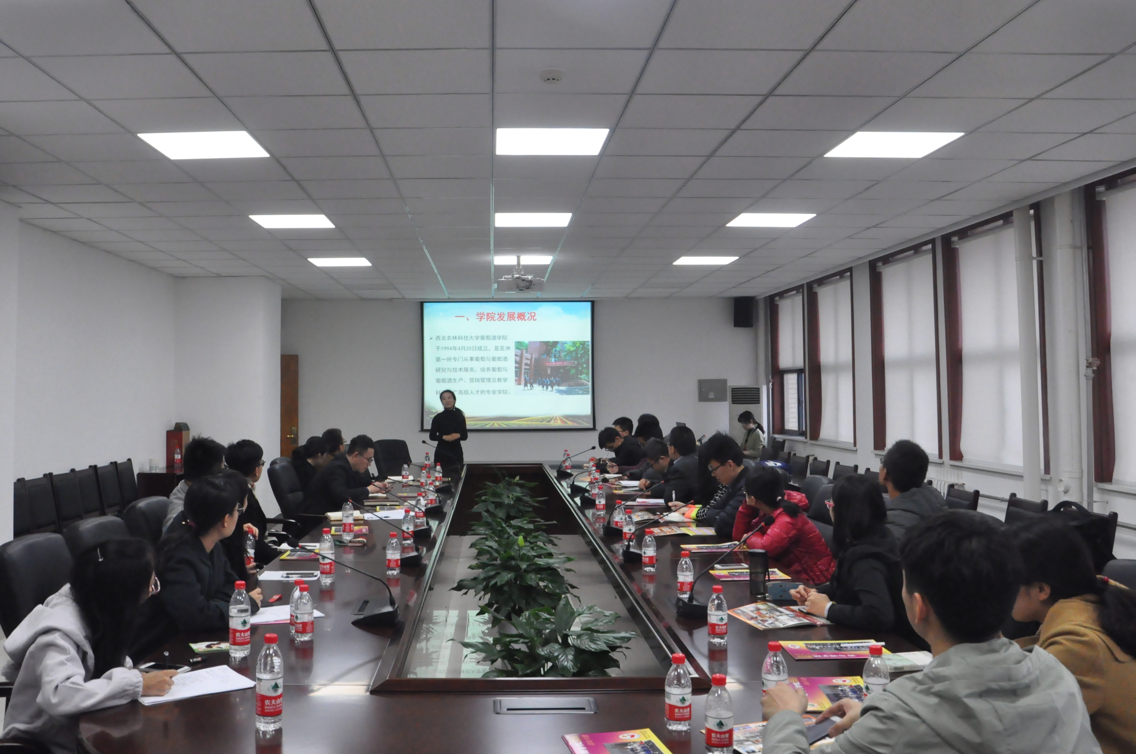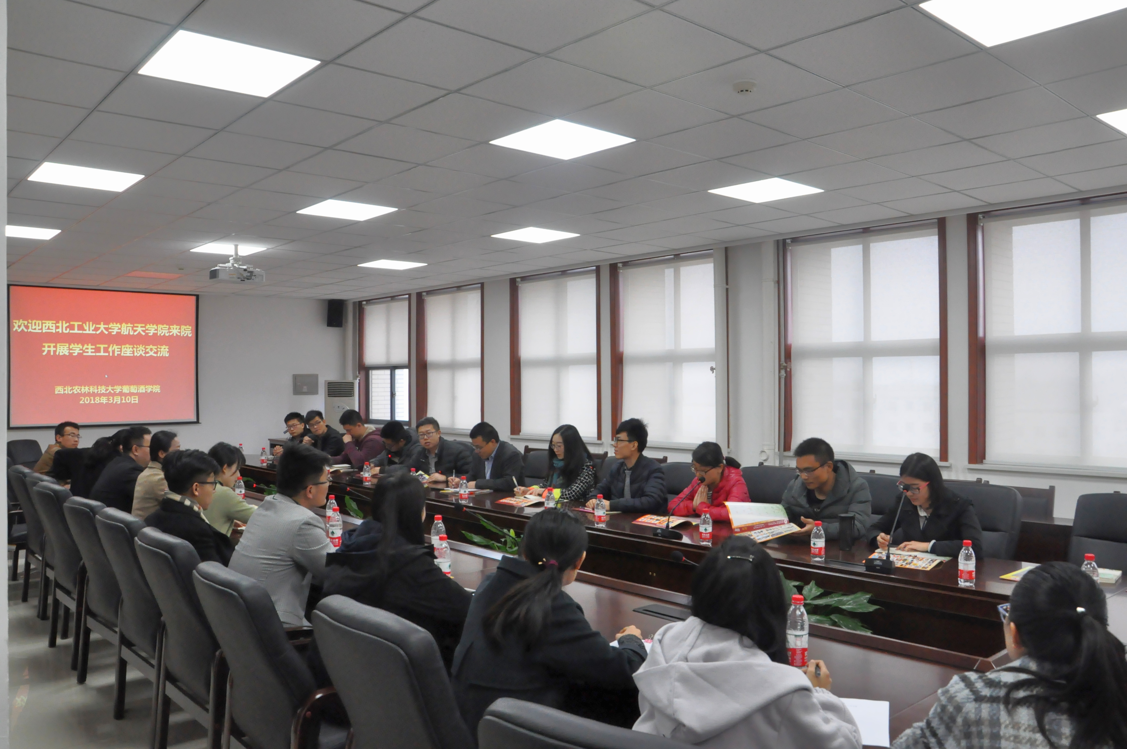 3月10日上午,在航天公司党委副书记张永福的带领下,公司团委书记赵通科、研究生辅导员罗淑娟等老师及公司研究生会骨干成员等共计十五人,赴杨凌与西北农林科技大学葡萄酒公司进行员工工作经验交流。