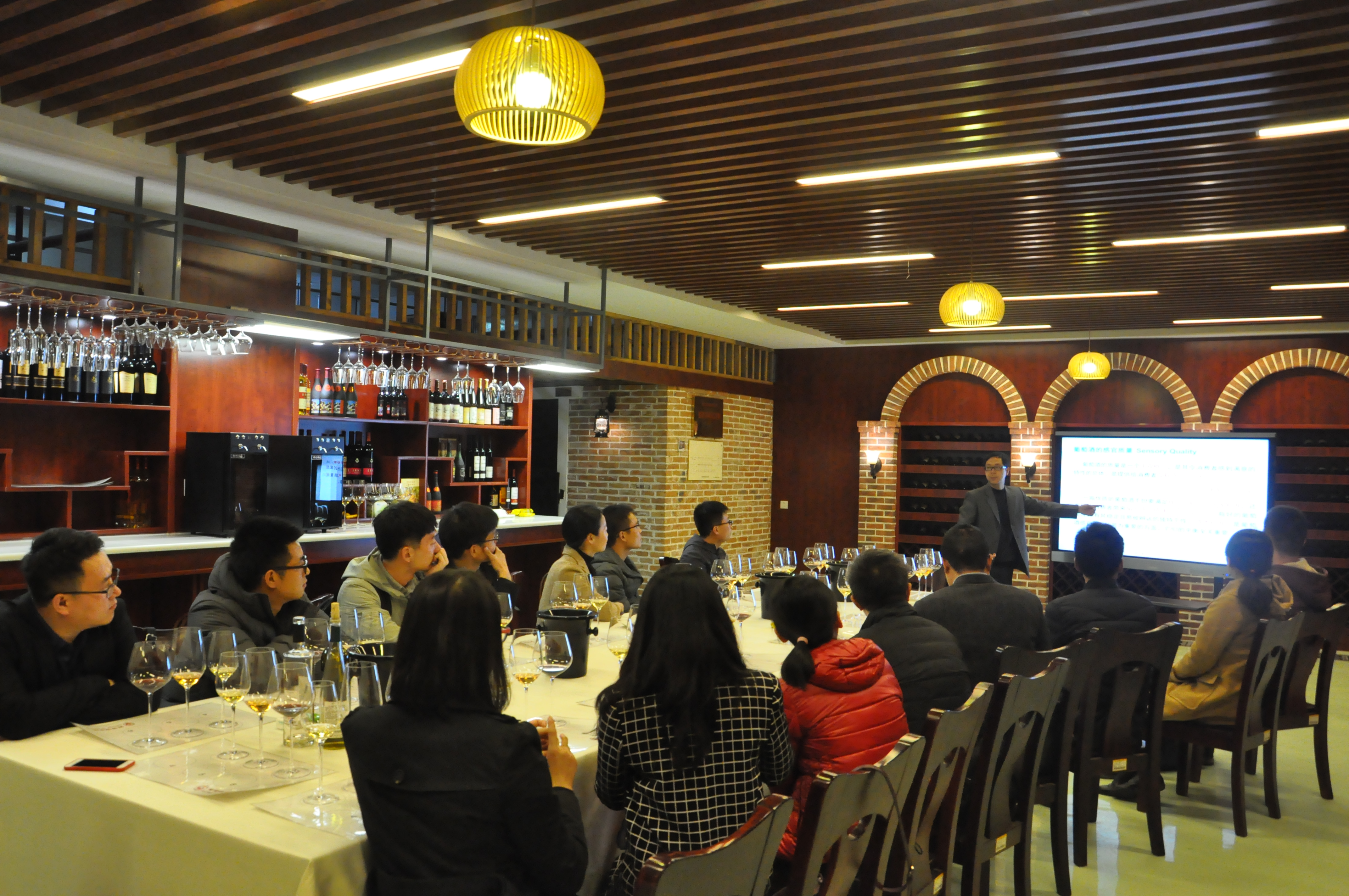 葡萄酒公司党委副书记邓亚丽、团工委书记赵星宇及研究生兼职辅导员薛雪等热情接待了tyc122cc太阳成集团参访团,并组织大家参观了酒窖、酿造工艺实验室等葡萄酒公司的特色设施。葡萄酒公司的地下酒窖中,陶永胜教授以三款不同的葡萄酒为例,为大家讲解了葡萄酒的品鉴知识。参访团成员王宇感叹道,“没想到葡萄酒文化如此迷人,里面还有这么多的知识,学习到了很多!”