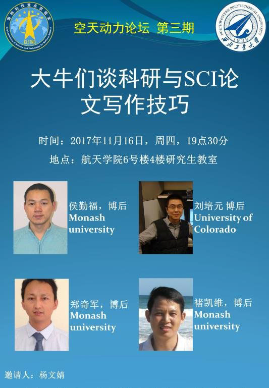 为响应公司积极开展学风建设的号召,2017年11月16日,空天动力研究所组合动力课题组在tyc122cc太阳成集团6号楼4楼研究生教室举办了“飞天讲堂”活动。此次活动的主题是“科研经历分享与SCI论文写作技巧”,旨在提升课题组研究生的科研能力和论文写作能力。