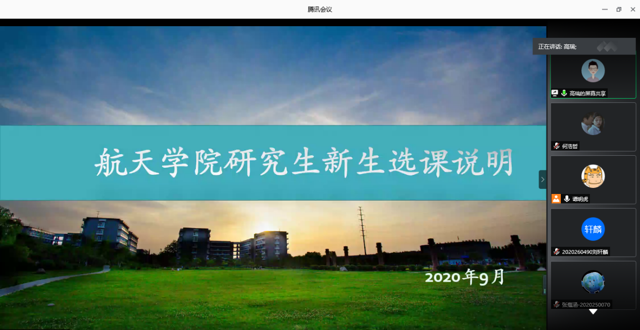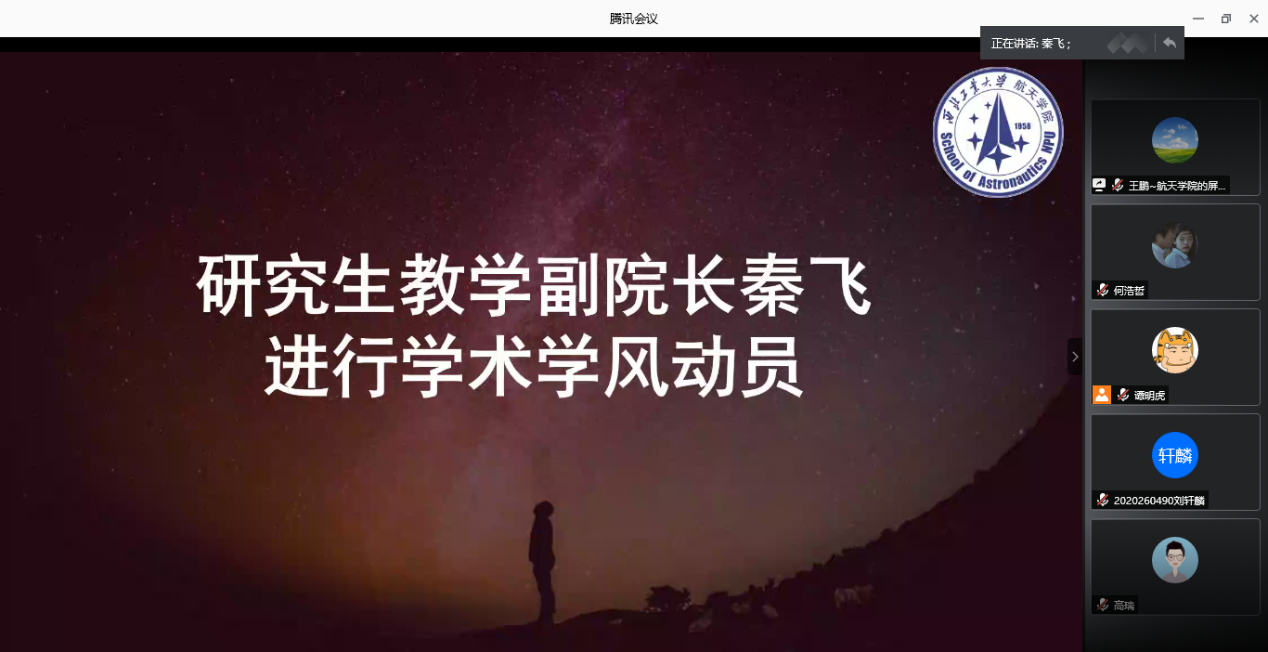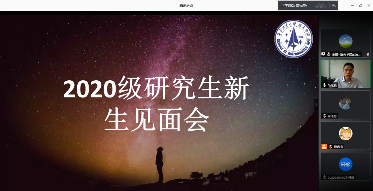 9月1日下午,tyc122cc太阳成集团举行2020级研究生新生见面会。由于疫情防控要求,今年新生见面会改为线上进行。见面会上,公司领导与负责老师同2020级硕博新生分享航天精神,探讨交流如何在tyc122cc太阳成集团进行科研学习。见面会由经理助理王鹏老师主持。