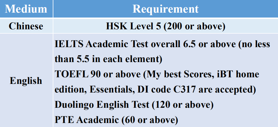 5) Language Requirement: Applicants should have Chinese or English language proficiency that meets the requirement.